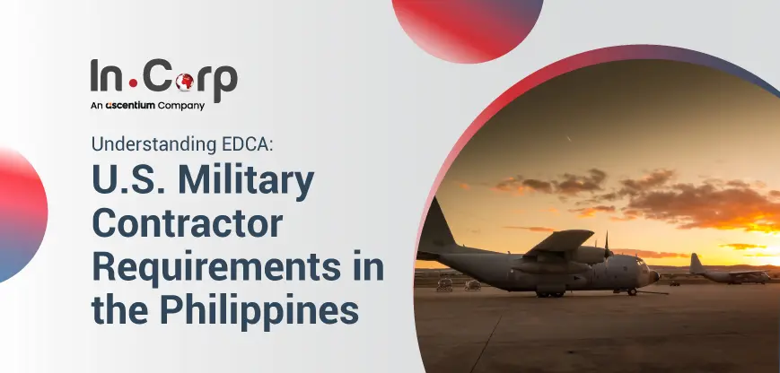 The Enhanced Defense Cooperation Agreement (EDCA) strengthens PH-US defense cooperation by enabling U.S. forces to operate in designated Philippine military bases. U.S. military contractors play a critical role in supporting EDCA projects, including construction, logistics, and equipment prepositioning. To operate in the Philippines through their Philippine Entity, these contractors must establish a legally registered entity in compliance with local regulations.